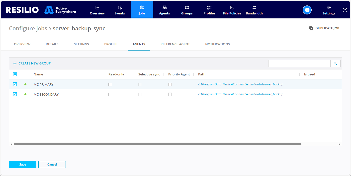 If you want to introduce geo-diversity to your Resilio Active Everywhere deployment, you can deploy Management Consoles in different locations in an active-passive arrangement, and manually switch to the secondary instance in case of a failure. The downtime won't affect the ongoing Job Runs as the Agents connect to each other to form a multipoint-to-multipoint network, and no job-specific data transfers are routed through the Management Console.