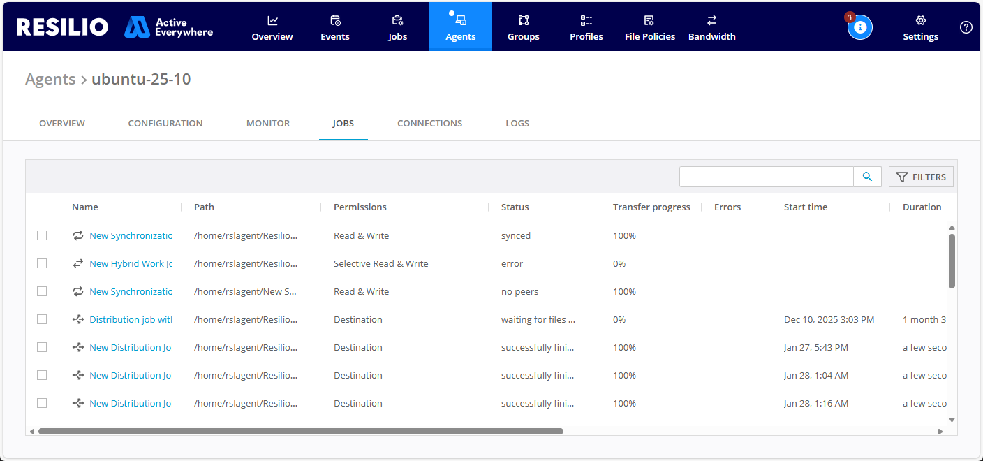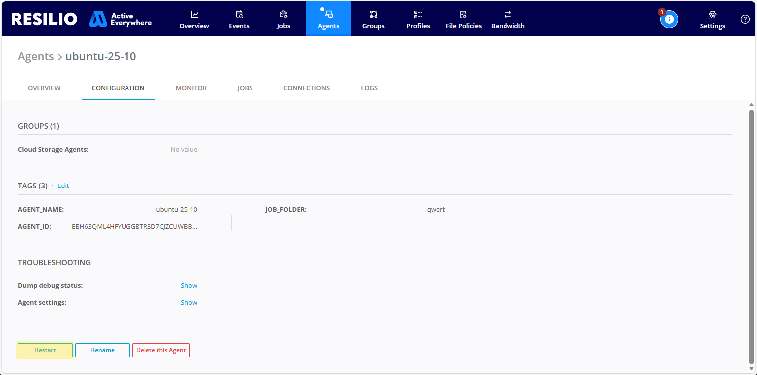 - Restarting an Agent may take some time, especially if it is involved in Jobs that handle a large volume of files.