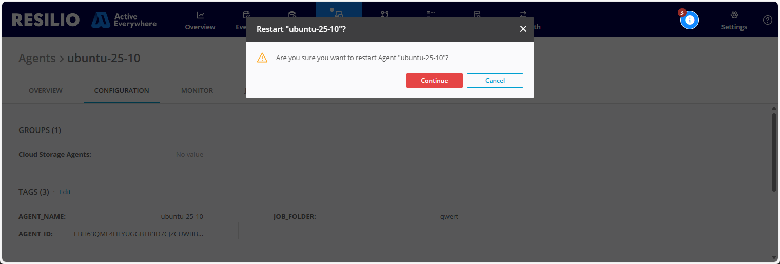 - Select Agents, then locate and click the Agent you want to restart.