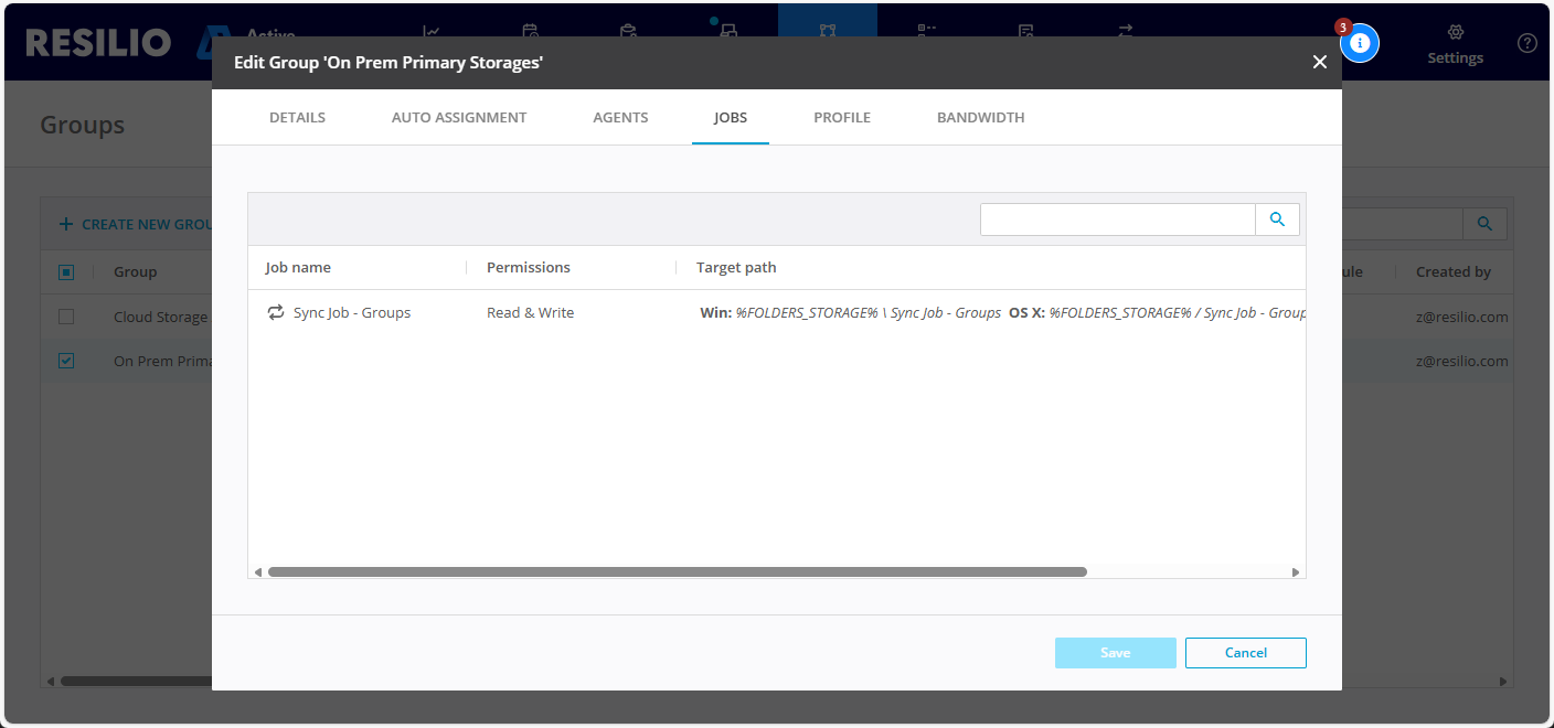 - Select JOBS to view the list of Jobs that the grouped Agents participate in.