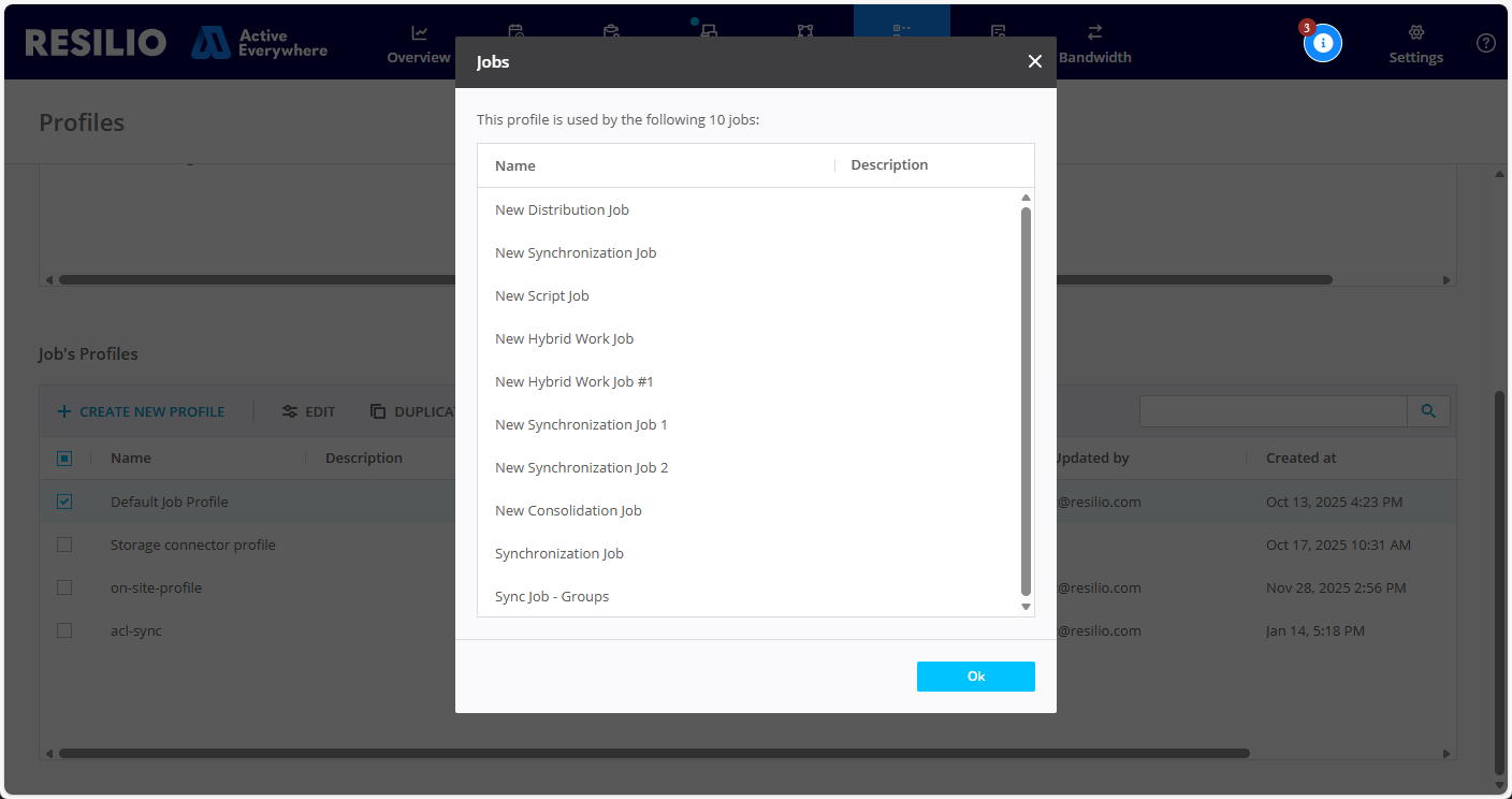 It is strongly recommended to recreate the Job when prompted by a Profile update. Continuing to use the existing Job may lead to a Job failure. If the Profile update also requires an Agent restart, avoid restarting the Agent until the Job has been recreated.