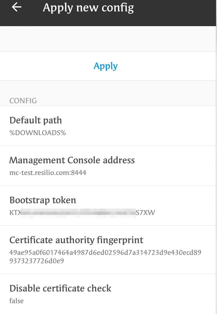 2. Scan QR code. From MC UI show QR code when generating agent config and scan it with the phone.