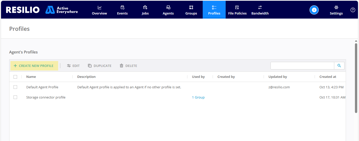 - Select Profiles, then in the Agent’s Profiles section, click + CREATE NEW PROFILE.