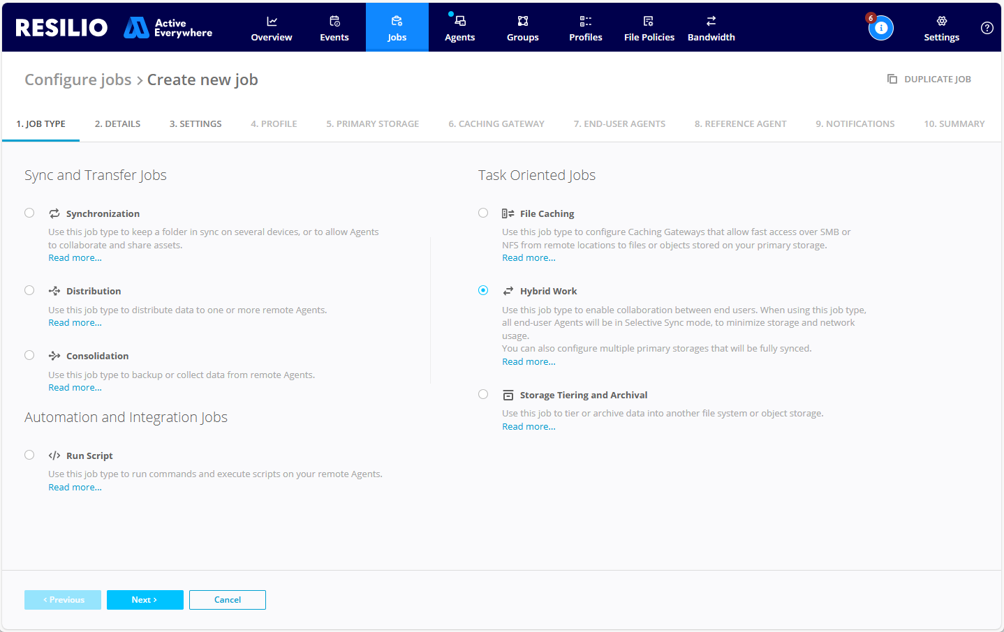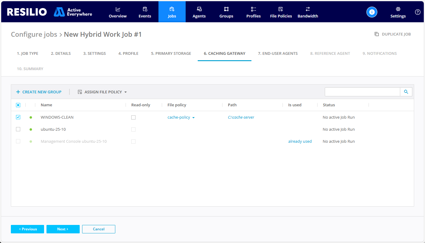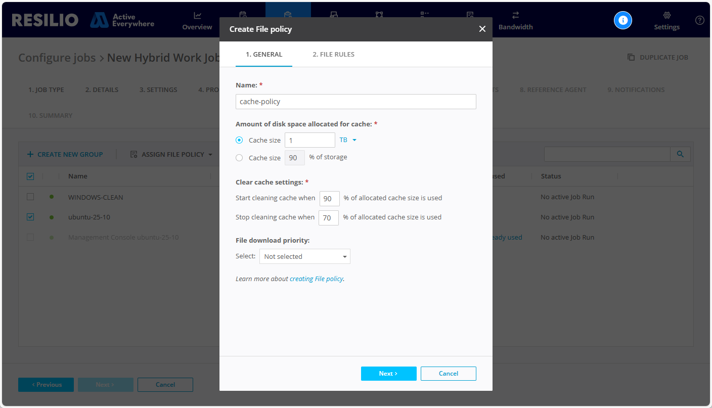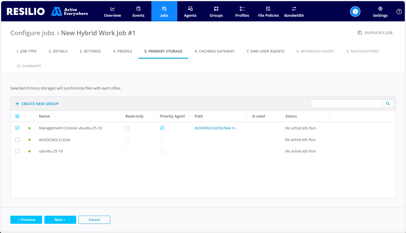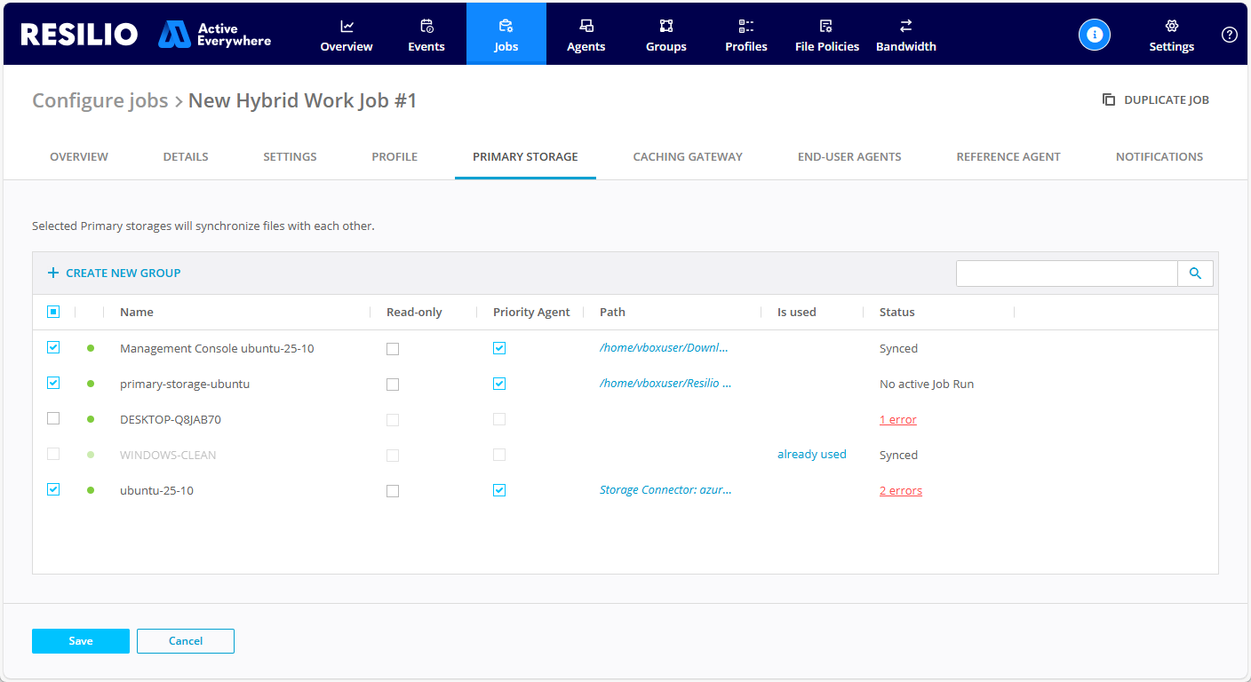 - Define synchronization jobs specifying primary storages, caching gateways (optional), and end-user devices (optional).