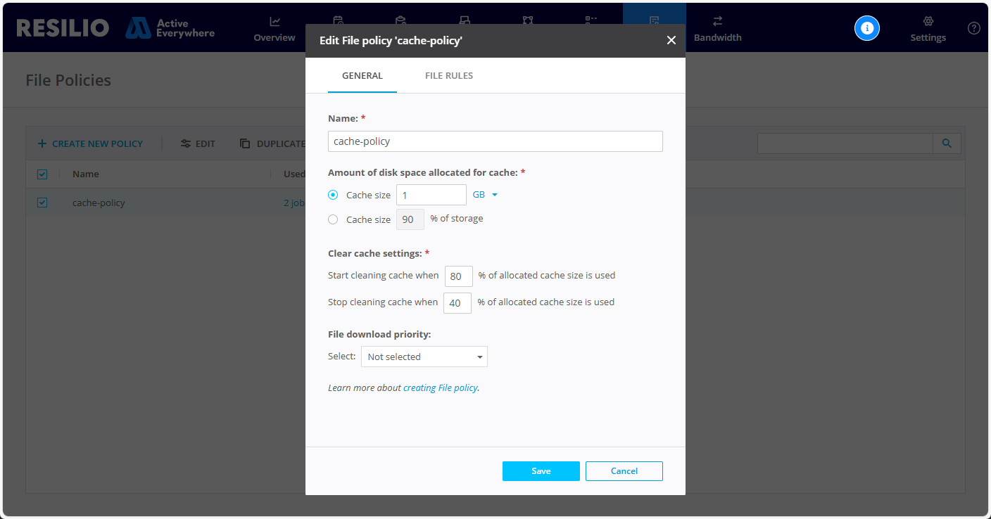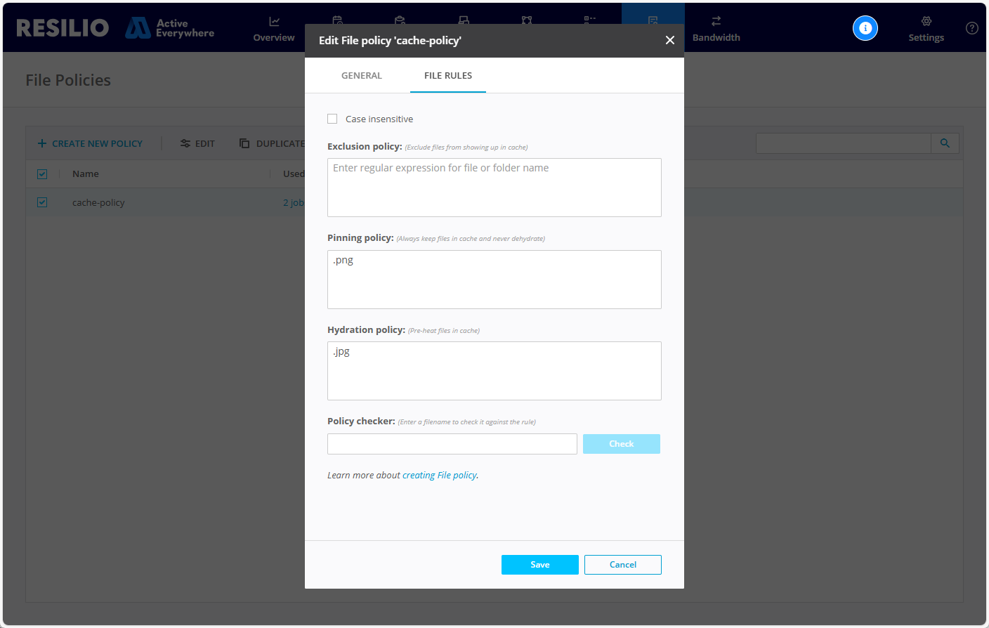 - Go to File Policies and edit the cache policy we used for the Caching Gateways — cache-policy.