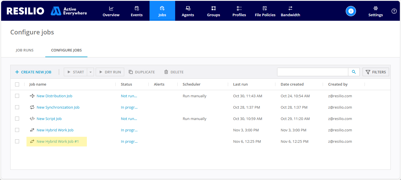 - Select Jobs > Configure Jobs and click your Hybrid Work job definition.