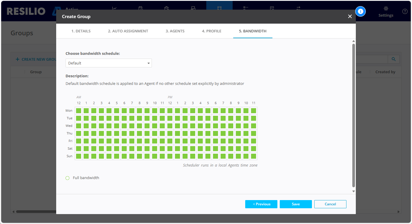 - Leave the default bandwidth schedule unchanged to allow unrestricted data transfer speeds, then click Save.