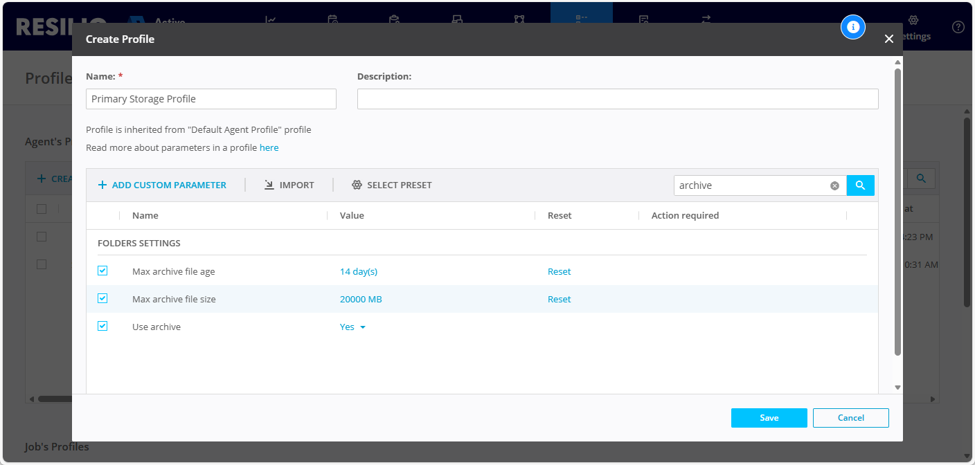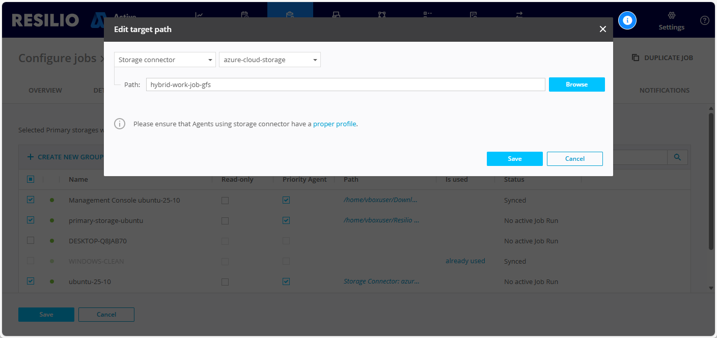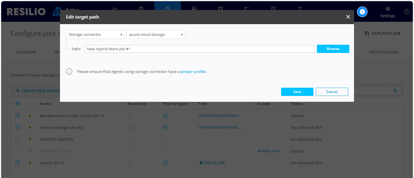 Create a dedicated Agent Profile for our on-prem Primary Storages:
