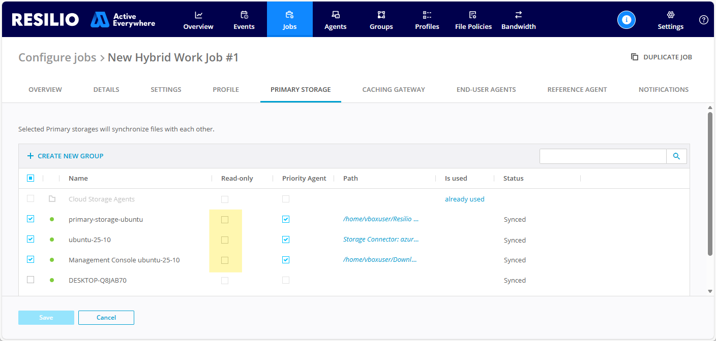 You can choose to make some of your Primary Storages read-only by checking the Read-only check box in the Primary Storage tab of the Job configuration.Making a Primary Storage read-only means that no changes from this source will be propagated to other Agents.
