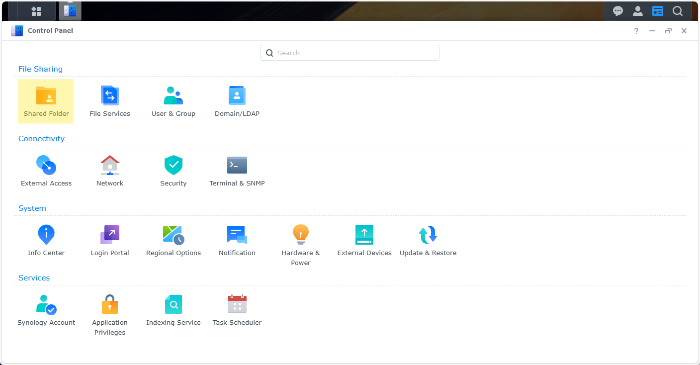 Open Control Panel, then in the File Sharing section, click Shared Folder.