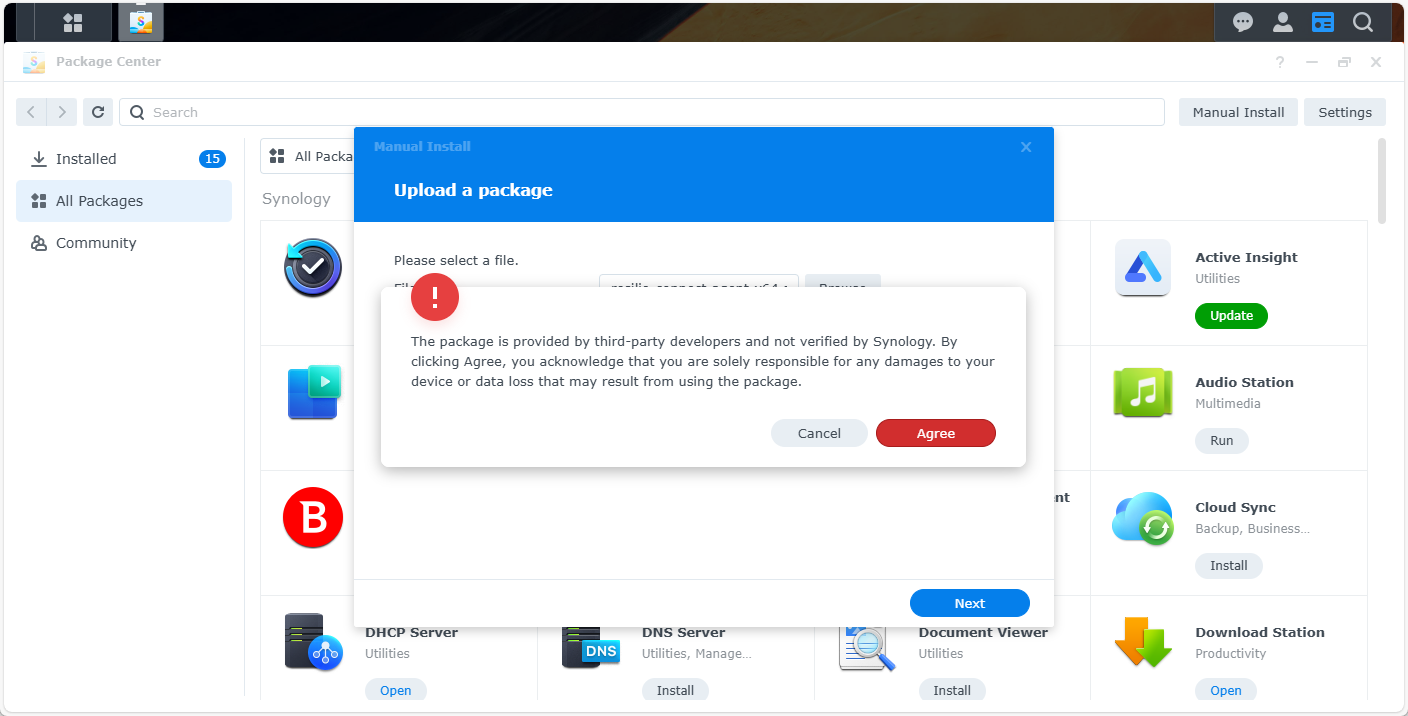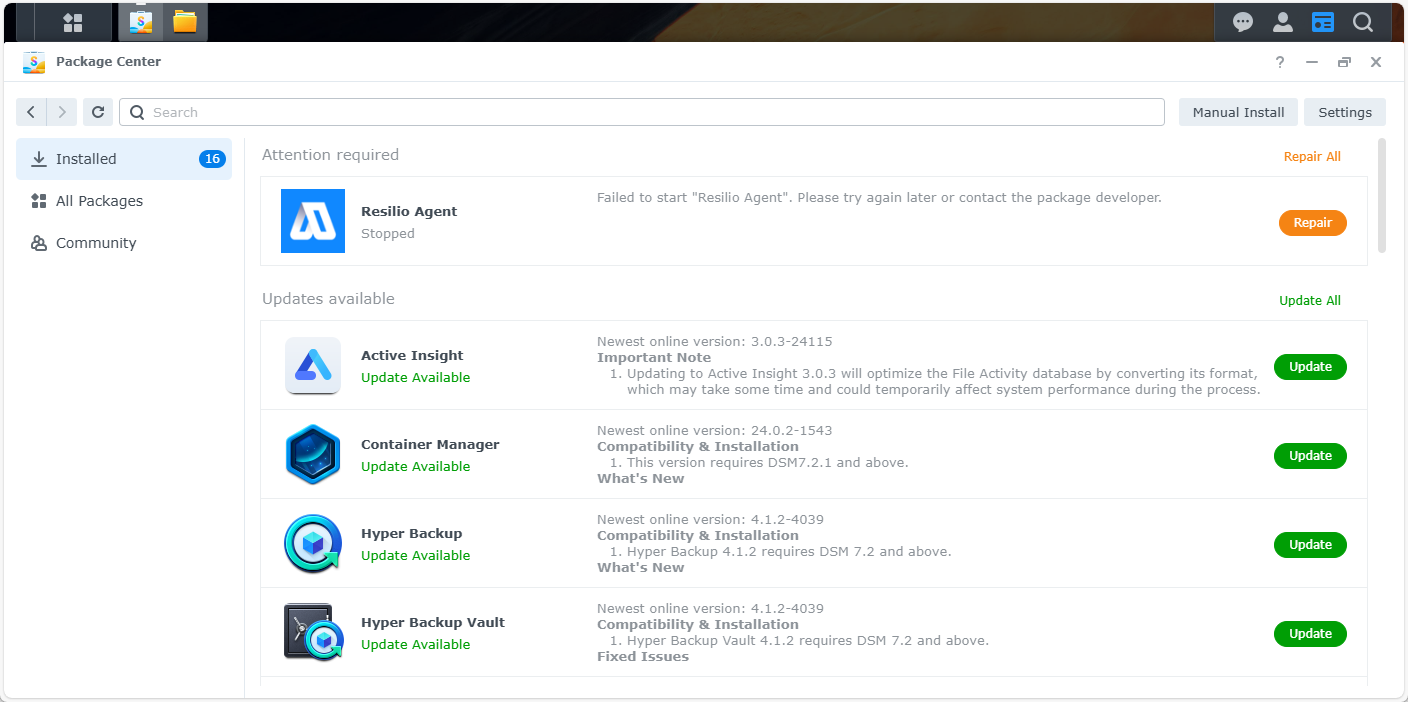- Download the Resilio Active Everywhere Agent package specific to your DSM version. Note: For DSM 6, make sure to download a Resilio Agent package dedicated to your hardware architecture. For information on how to identify the hardware architecture of your Synology NAS, see What kind of CPU does my Synology NAS have?