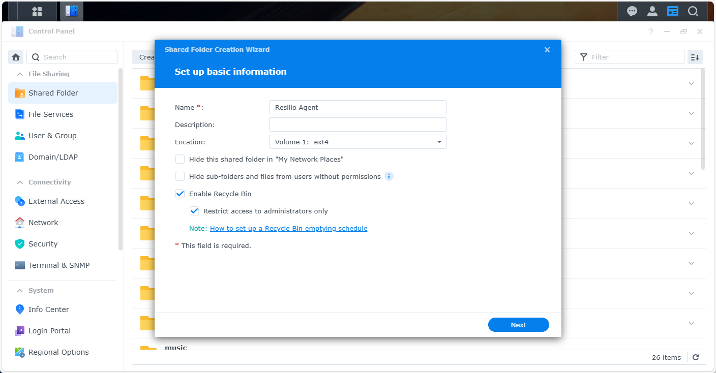 Resilio Agent, then click Next.Note: Mind the case and the space, ensure there are no trailing spaces.