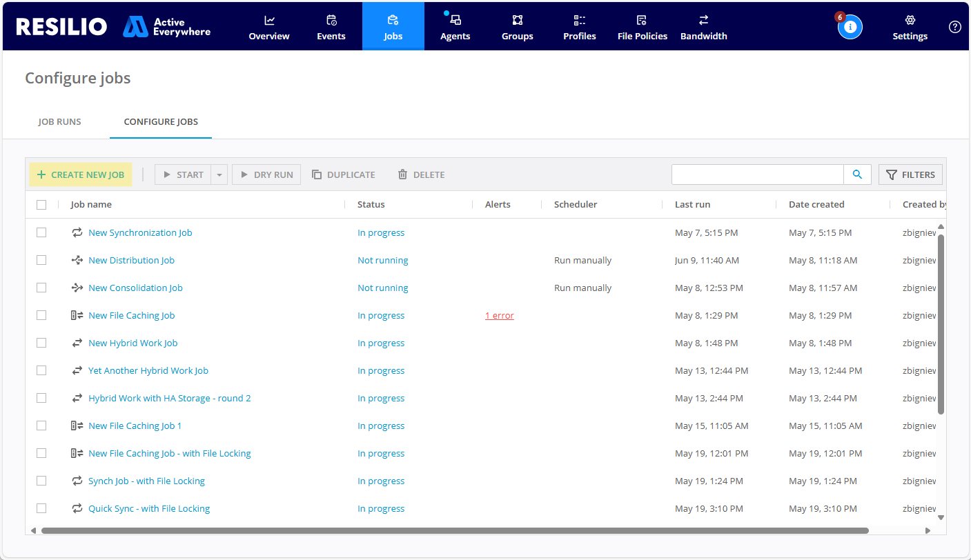 - In the Management Console, from the top menu, select Jobs.